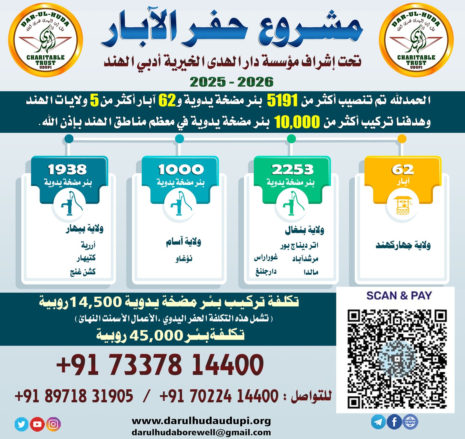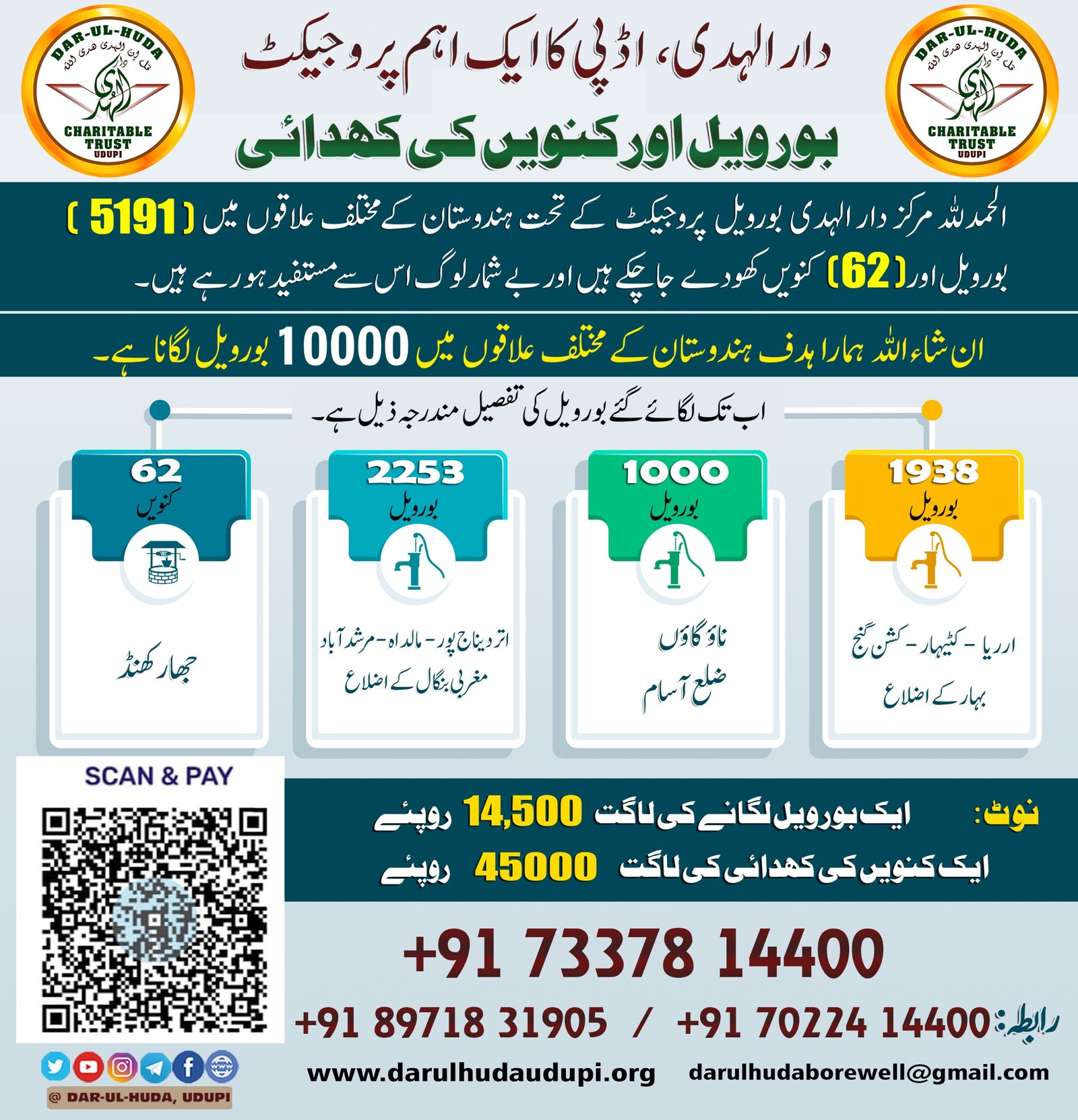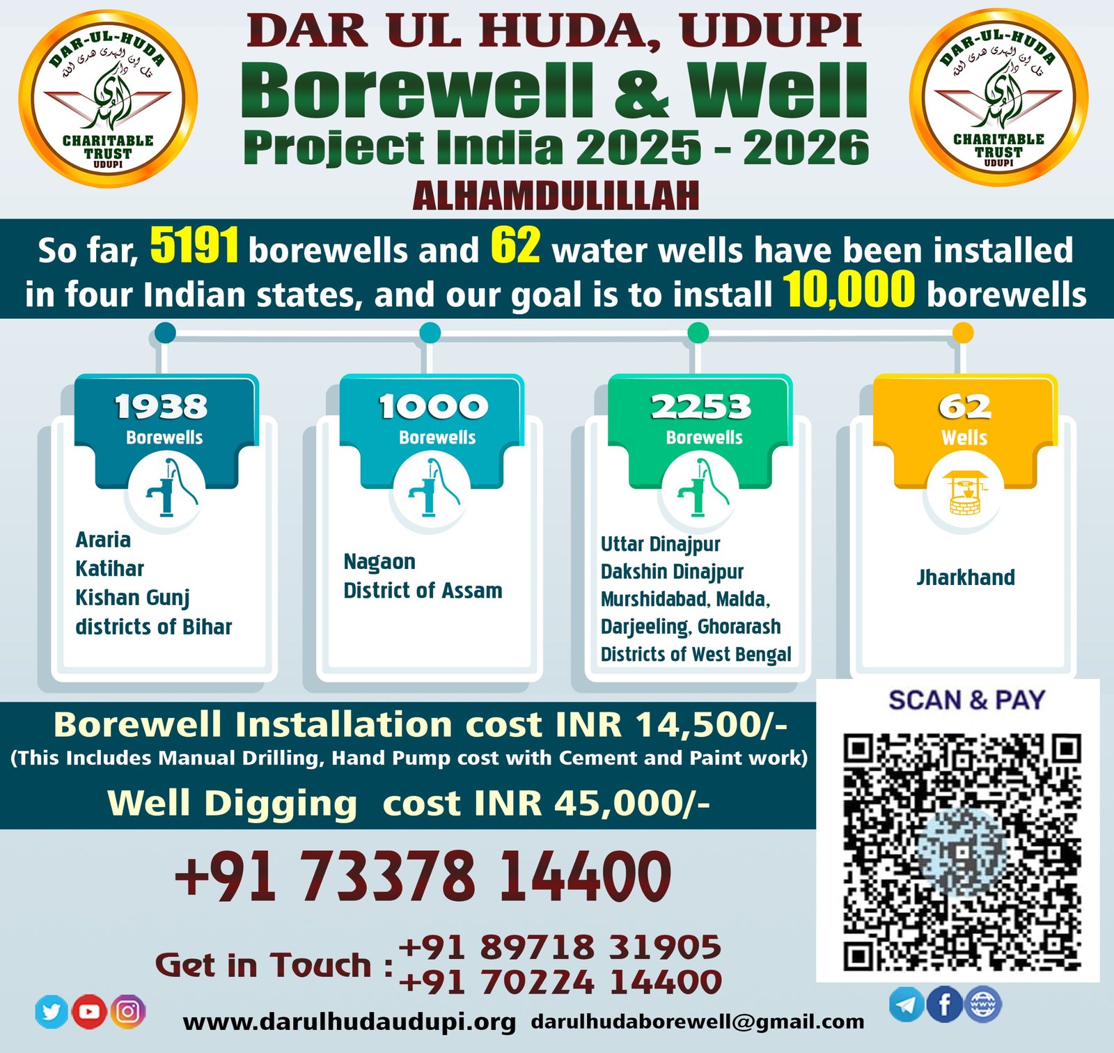 Alhamdulillah! with immense gratitude, we announce the success of the Dar-ul-Huda Borewell Project, a beacon of hope spanning across various corners of India. Through relentless dedication, we have managed to install over 5191+ borewells, each serving as a lifeline for communities in dire need of water.