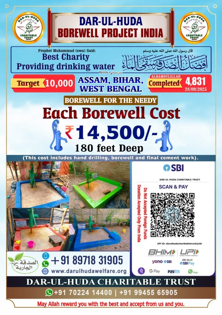 Dar-ul-Huda Borewell project ke saath Sadaqa e Jaria me hamare saath shaamil ho.