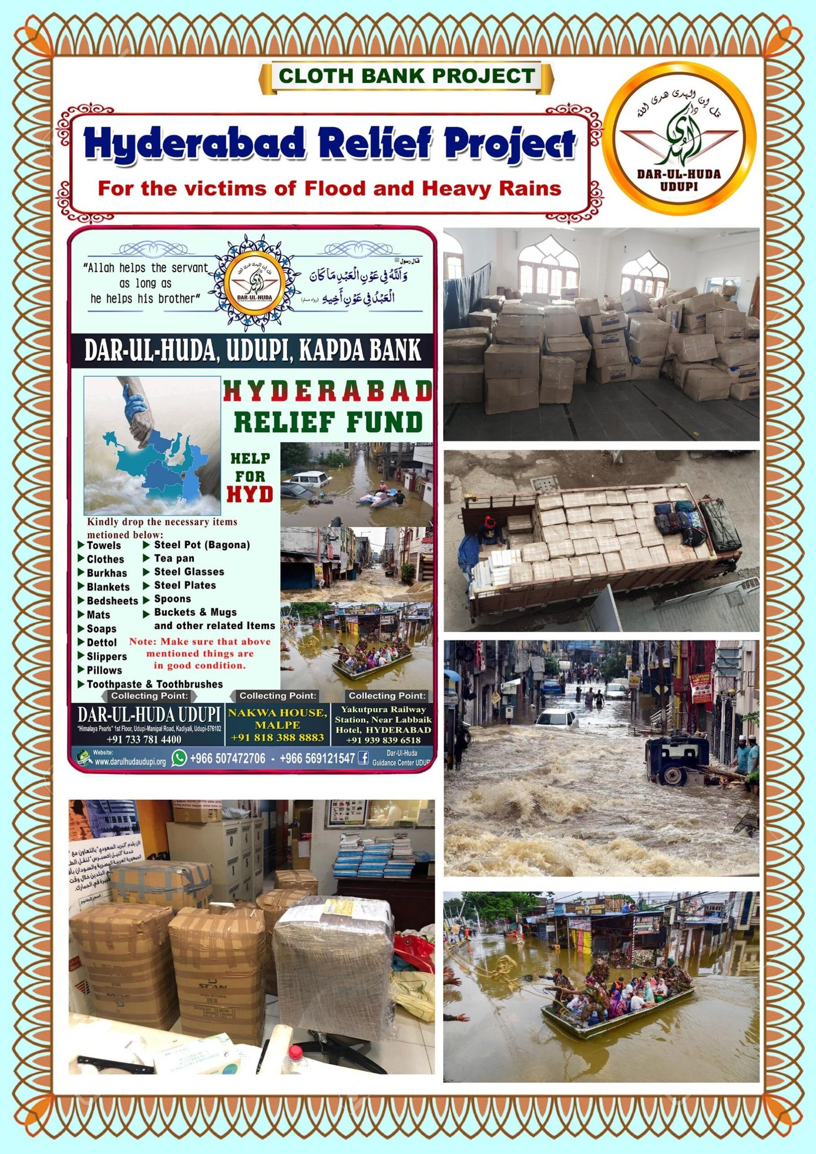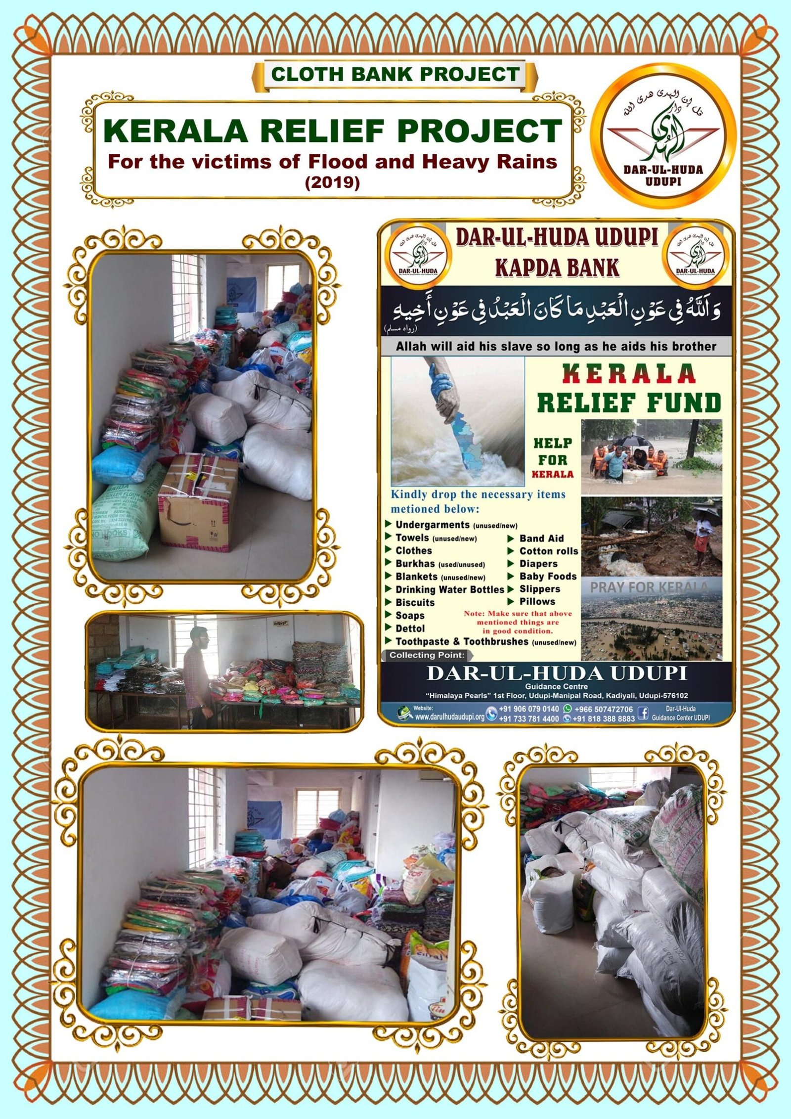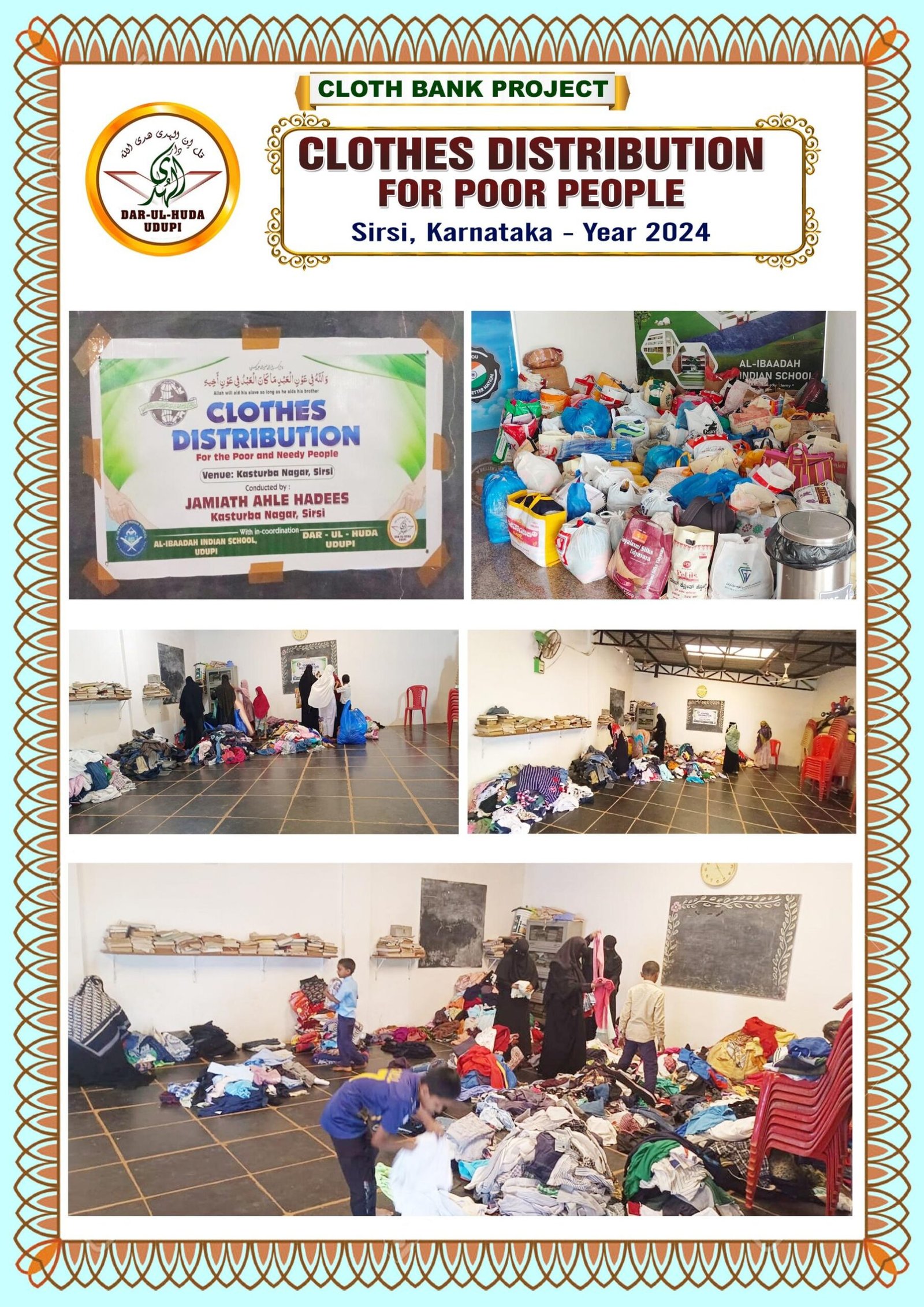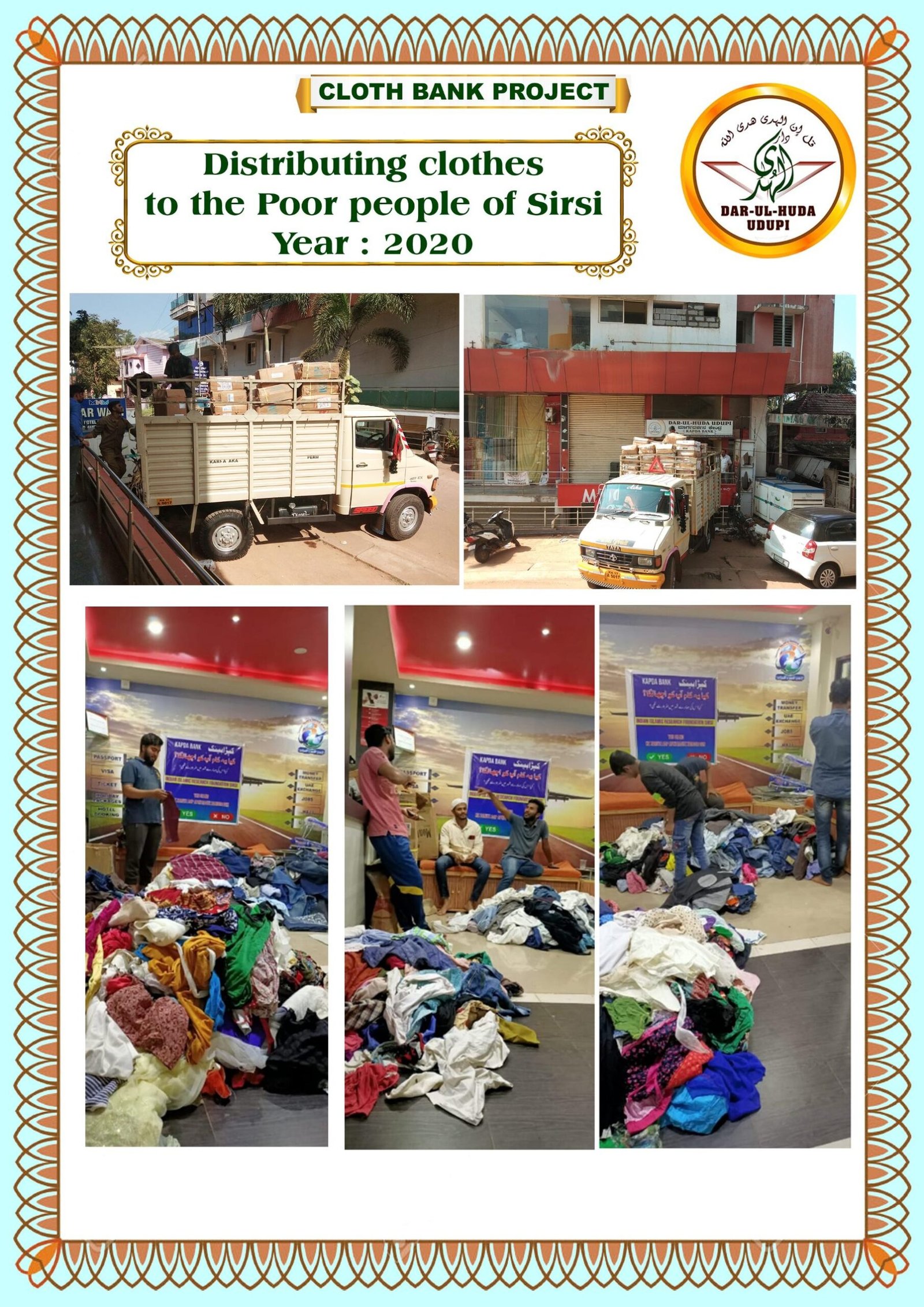 The Kapada Bank Project (Cloth Bank) is a humanitarian initiative by the Dar ul Huda Charitable Trust in Udupi, Karnataka, that collects surplus clothing to redistribute to those in need. The project aims to assist the underprivileged, foster social cooperation, and promote a culture of mindful contribution. With six branches operating across various cities, the initiative has successfully reached over 5,000 beneficiaries and distributed approximately 6,000 pairs of clothes.