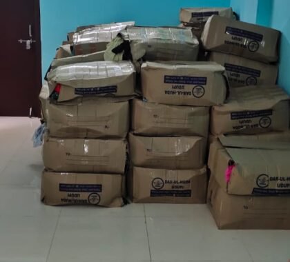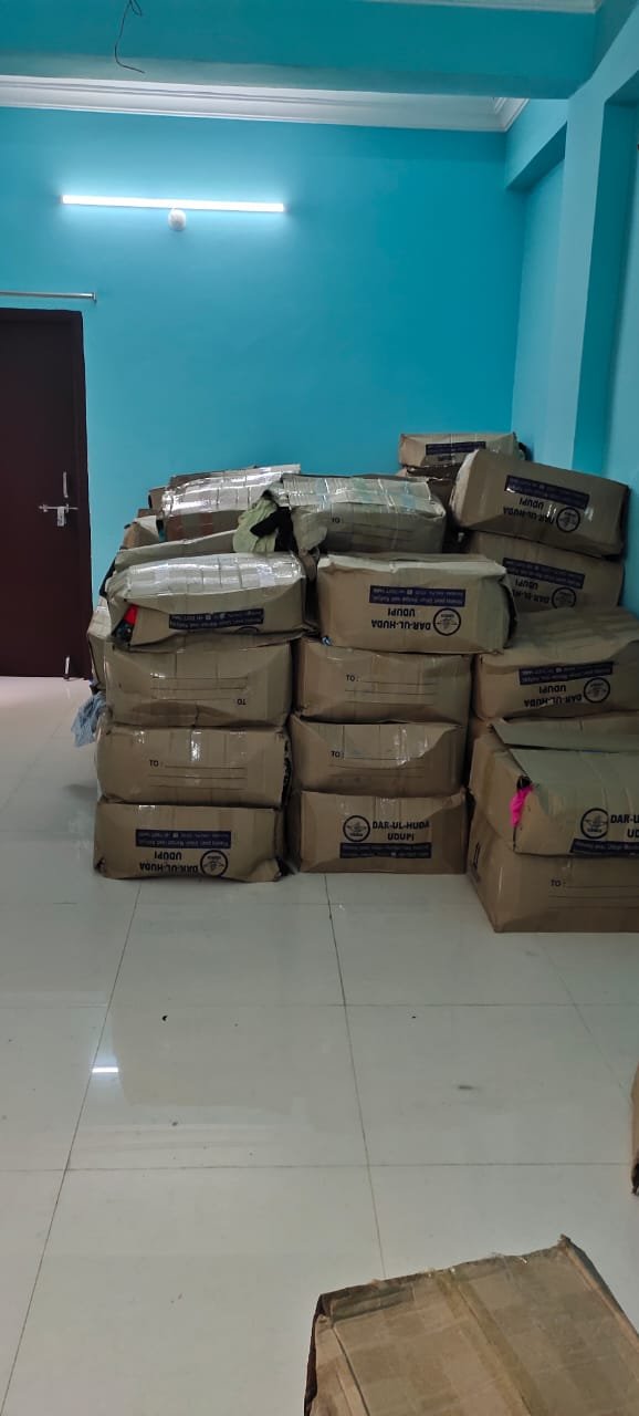 Volunteer Deployment: A dedicated team from the Dar ul Huda Udupi Guidance Centre traveled directly to the Kokan belt to manage the sorting and distribution of “consignments” (large relief bags) and ensure they reached the most remote affected areas.
